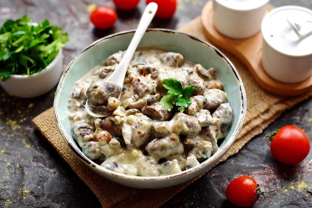 Куриные сердечки в сметано чесночном соусе Ингредиенты: - Куриные сердечки - 500 грамм - Сметана - 200 грамм - Чеснок - 3 зубчика - Растительное масло - 2 столовые ложки - Соль - по вкусу - Перец - по вкусу - Лук - 1 штука Приготовление: 1. Очистите чеснок и мелко порубите его. 2. Натрите куриные сердечки солью, перцем и добавьте частично рубленный чеснок. 3. Нагрейте растительное масло в сковороде, добавьте нарезанный лук и обжарьте до мягкости. 4. Добавьте куриные сердечки и жарьте, пока они не приобретут золотистый цвет. 5. Добавьте сметану в сковороду и взбейте соус до однородной консистенции. 6. Продолжайте готовить и помешивать, пока соус не станет однородным цветом и не толстый по текстуре. 7. Добавьте оставшийся чеснок и перемешайте. 8. Подавайте куриные сердечки с соусом на стол с гарниром на выбор.