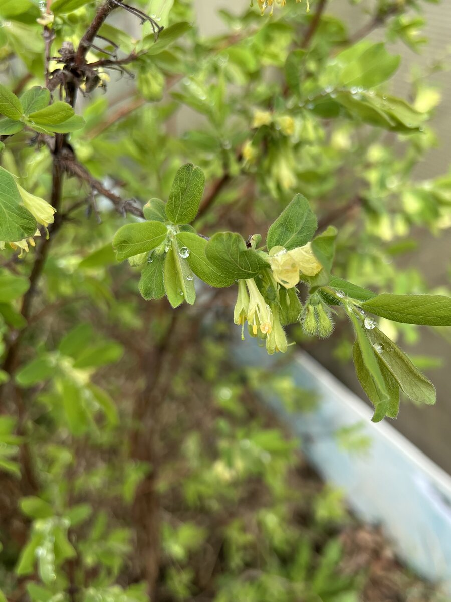 А у нас сегодня дождь. Хлещет со вчерашнего вечера, не переставая. И температура не более +13. Холодно! Все планы отодвинулись на неопределённый срок. Тем не менее, жизнь не стоит на месте: уже цветёт жимолость, самая первая садовая ягода. Цветочки такие себе из-за дождей, однако, стоило только ненадолго выглянуть солнышку, как трудяга-шмель был уже тут как тут: Надеюсь, ягоды завяжутся с такими помощниками, несмотря на дожди😊 Как минимум, мне хотелось бы в это верить ) Дело в том, что жимолость - перекрёстноопыляемое растение. Для того, чтобы получить ягоды, нужно иметь сразу несколько кустов (не менее трёх), и желательно разных, но подходящих друг другу сортов, цветущих в одно и тоже время. У меня как раз три молодых куста: Золушка, Камчадалка и Бакчарская. В прошлом году они дали свой первый большой урожай. Половину я успела собрать, а половину за меня собрали дрозды🪶 Посмотрим, как нынче завяжутся ягодки, в такую-то погоду. Но верить-то мне никто не запретит ))) Оставляем в по