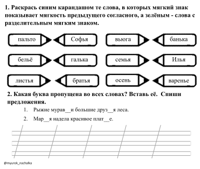 Коллеги, делюсь с вами двум карточками-пятиминуткам по темам "Мягкий знак показатель мягкости" и "Разделительный мягкий знак". Скачать обе карточки в PDF формате можно по ссылке https://t.me/myurok_nachalka Буду рада подписке!