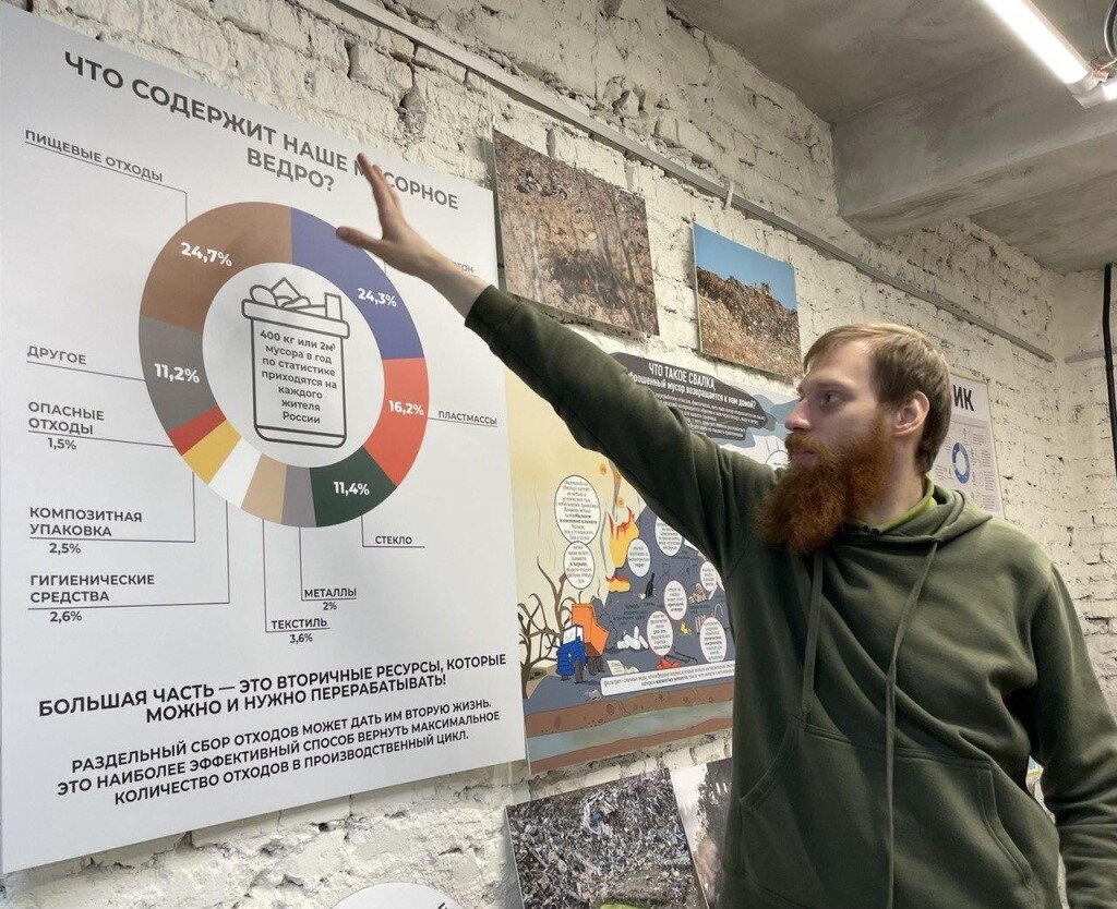 Вопрос к залу от сооснователя экоцентра «Сборка» Михаила Антонова: «Какое изделие является самым неэкологичным»? Аккумулятор, телевизор, сотовый телефон? Все не то! Ноутбук. При его производстве образуется 1700 кг отходов. И если отслуживший ноутбук просто выбросить в мусорку, мы не только получим неразлагающиеся сотнями лет отходы, но и потеряем часть ресурсов нашей планеты. Ежегодно вместе с электроникой, которую люди утилизируют, утрачивается несколько десятков килограммов золота и других достаточно редких металлов. Об этом и не только участники форума экологической журналистики «Экология: просто о сложном» узнали, посетив московский пункт экоцентра «Сборка» на Ленинградском шоссе. Это не просто пункт приема, где можно сдать 40 (!) фракций отсортированных отходов, но и музей, лекторий, экотехнопарк и зона обмена вещами. Каменный, бронзовый и железный века стали историей. Наше время можно назвать веком пластика. К счастью, часть пластика можно переработать во что-то новое. Например