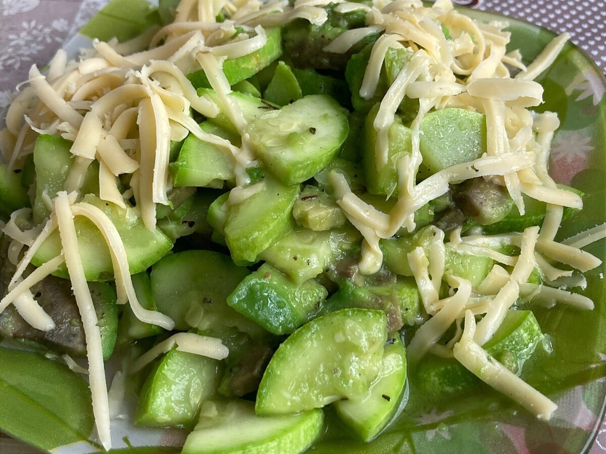 Часто встаёт вопрос, что приготовить в качестве гарнира, чтобы это было вкусно, полезно и, желательно, быстро. Поэтому сегодня я решила поделиться очень простым рецептом. Вам понадобятся: • Кабачок — 1 шт. • Авокадо — 1 шт. • Соль, перец, приправы — по вкусу. • Сыр — 100 гр. • Растительное масло для обжарки. Кабачок выбирайте молодой небольшого размера с мелкими семечками и нежной кожурой. Такие плоды не придется очищать перед обжаркой. Кабачок ополосните, при необходимости очистите от кожуры, нарежьте небольшими кубиками, посыпьте их солью и дайте постоять несколько минут. Авокадо разрежьте вдоль пополам, извлеките косточку, очистите от кожуры, нарежьте некрупно. Кабачок и авокадо обжарьте на растительном масле на медленном огне. Добавьте приправы по вкусу. Готовое блюдо можно посыпать тёртым сыром. Приятного аппетита!