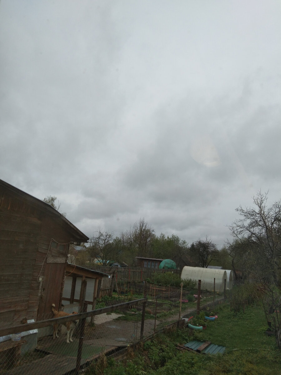 Вчера после завтрака до дождя успели только перевезти от родителей теплицу.