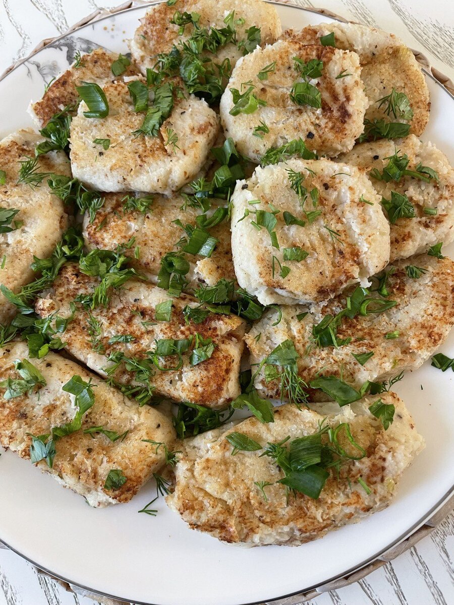 Измельчить при помощи блендера цветную капусту, фасоль и обжаренные лук и чеснок. Полученную массу посолить и сформировать котлетки. Обжарить на масле.