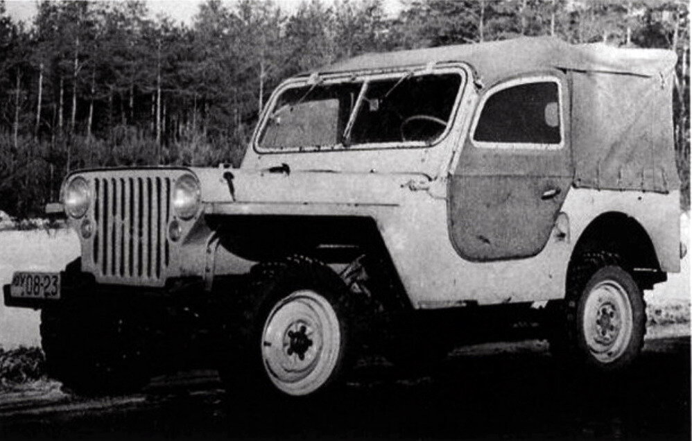 На МЗМА в конце 50-х годов началась работа над простым и надёжным джипом, который должен был заменить Москвич - 410. Первый опытный образец построили в экспериментальном цехе МЗМА в 1958 году под руководством Игоря Александровича Гладилина. В отчетах по испытаниям машина фигурировала как «Москвич 4х4». Создатели первого образца повторили компоновку Willys и почти в точности воспроизвели его внешность. Новая модель отличалась только световыми приборами, взятым от ГАЗ-69, ветровым стеклом и наличием дверей. На машину поставили серийный верхнеклапанный двигатель М-407, недавно освоенный заводом. Раздаточная коробка устанавливалась непосредственно на фланец коробки передач, а не отдельным агрегатом, поэтому промежуточный карданный вал был исключен. Мосты закрепили поверх рессор. Для упрощения вождения установили один общий рычаг управления раздаточной коробкой и включения переднего моста. В задней подвеске появился стабилизатор поперечной устойчивости. В то же время «Москвич 4×4» с