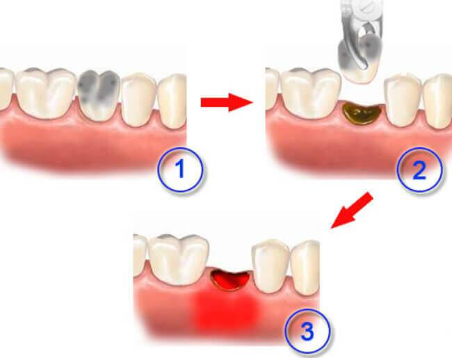Альвеолит без внимания быстро переходит в одонтогенный гайморит, флюс, остеомиелит. Основной метод лечения — очищение зубной лунки с последующим введением антисептических препаратов.