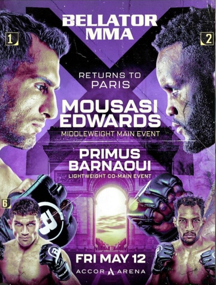 BELLATOR 296 МУСАСИ ПРОТИВ ЭДВАРДСА Беллатор ММА 12 МАЯ 2023 Г. Франция АККОР АРЕНА, ПАРИЖ, ФРАНЦИЯ