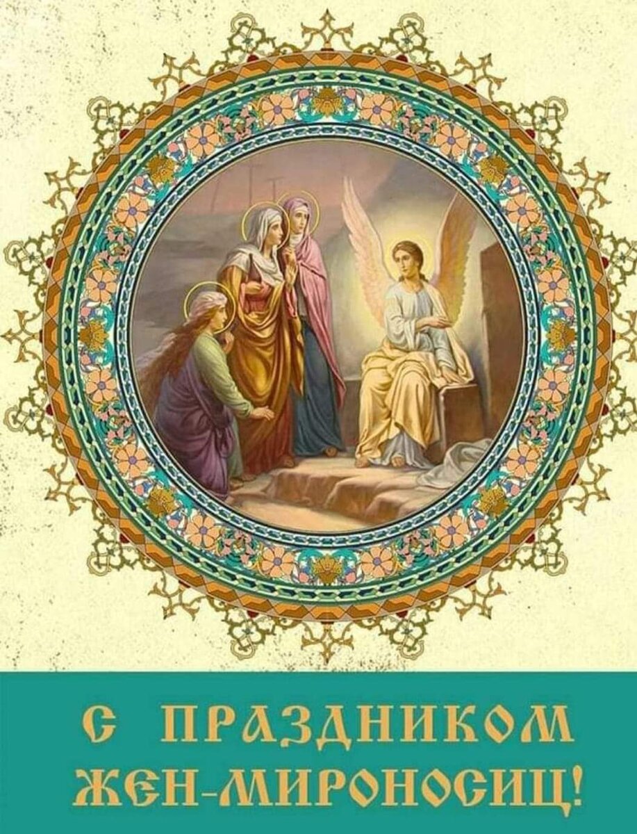С ПРАЗДНИКОМ ЖËН- МИРОНОСИЦ! ХРИСТОС ВОСКРЕСЕ! Жены-мироносицы - это женщины, которые были свидетелями смерти Иисуса Христа. После нее они принесли миро (специальное ароматическое масло), чтобы умастить тело Спасителя благовониями. Поэтому женщин и назвали мироносицы, то есть, несущие миро. История точно указывает на семерых женщин-мироносиц - Марию Магдалину, Марию Клеопову, Саломию, Иоанну, Марфу, Марию, Сусанну, но на самом деле их было больше. Это были женщины разного возраста, происхождения и достатка: например, была среди них богатая и знатная жена домоправителя царя Ирода, и жена простого рыбака Саломия. Объединяло их одно - вера. Женщины долгое время следовали за Христом из города в город, где он проповедовал, заботились о его ночлеге и питании и не отвернулись, когда Иисуса осудили на казнь. Вместе с Иосифом смелые женщины погребли тело Спасителя, а после не побоялись пойти к его гробу, где стояла стража. В благодарность за веру, верность, милосердие и любовь именно жены-м
