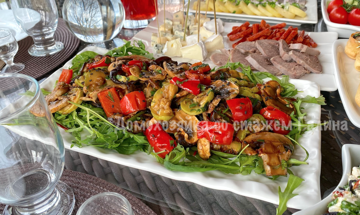 Салат из овощей и шампиньонов на гриле отличное дополнение к мясу или рыбе