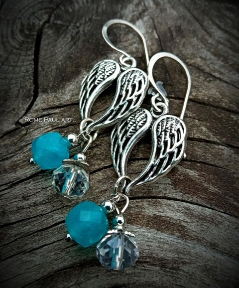 Серьги ANGEL WINGS с аквамарином и хрусталём