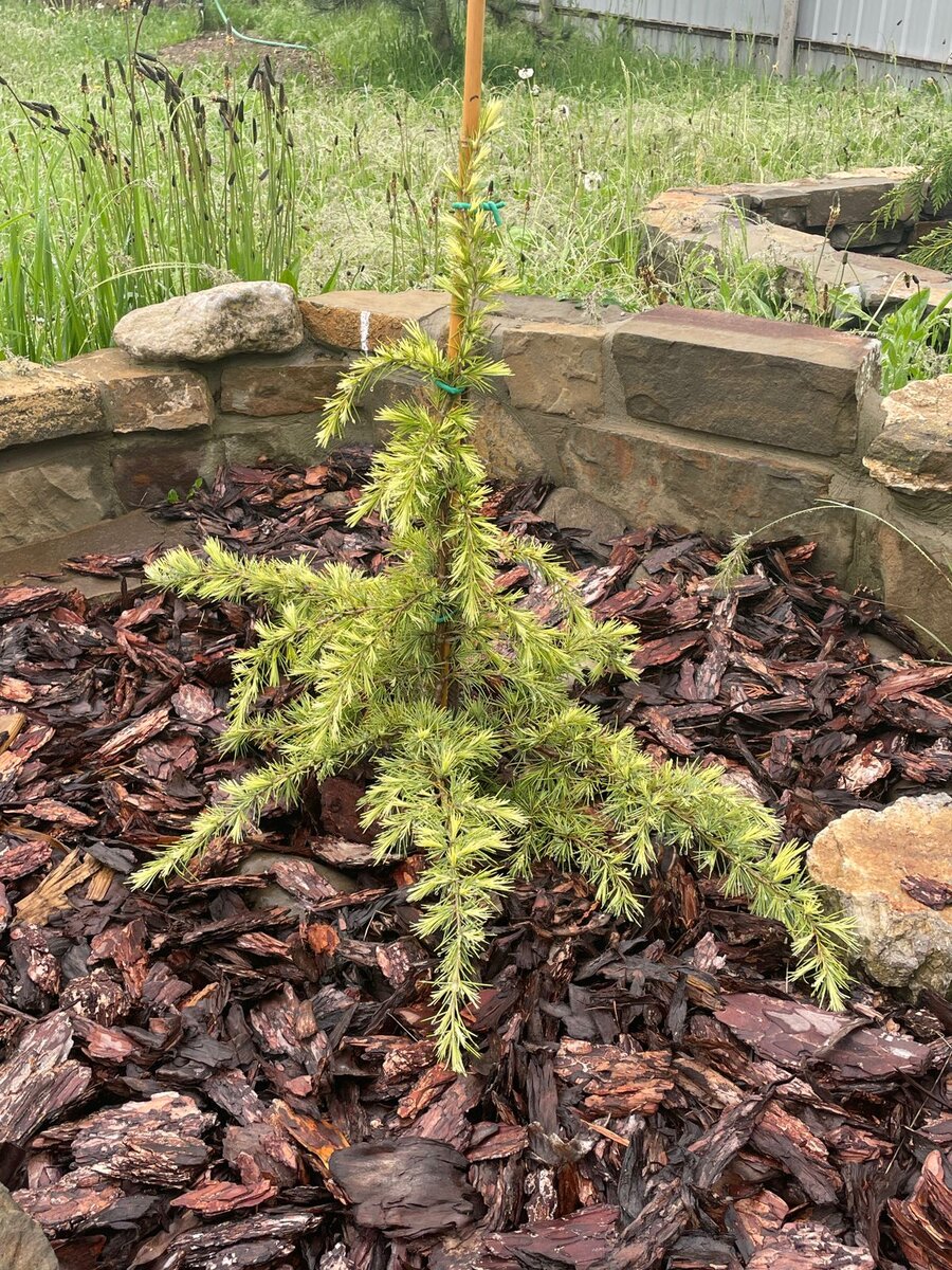 Кедр Гималайский White Imp.Белый Бесенок. Cedrus deodara 'White Imp" - компактный сорт кедра свободного роста. Молодой прирост практически белого цвета. . Годовой прирост 5-8см.В 10 лет кедр не выше 1,5м. Очень долго приживался..А в этом годy "ожил" одним из первых .