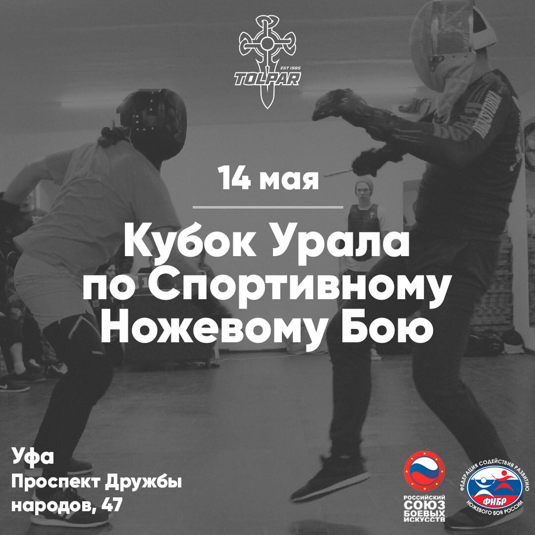 Друзья, в рамках 5-х Евразийских игр боевых искусств состоится Кубок Урала по СНБ ⚡️ Уже традиционно в Уфе пройдут соревнования по ножевому бою – Кубок Урала. Кубок пройдет 14 мая в Уфе. Приглашаем всех любителей ножевого боя на мероприятие! Организаторы — школа Толпар при поддержке ООО "Федерация содействия ножевого боя России" ✊🏻 Нас ожидают яркие захватывающие бои, проверка духа на прочность, атмосфера праздника и зашкаливающая энергия в зале! Для участия в соревнованиях необходимо зарегистрироваться на нашем сайте. Начало в 9:00 Проспект Дружбы народов, 47 📌 #толпар #ножевойбой #рсби #кубокуралапоснб