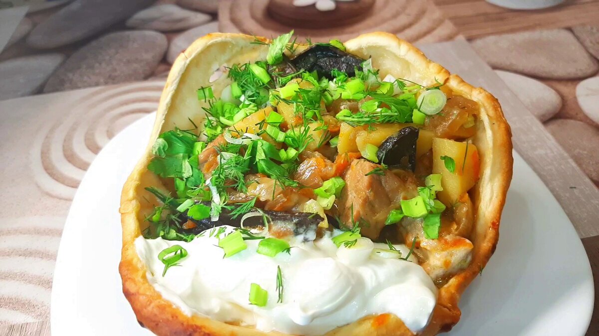 Удивите свою семью-приготовьте им жаркое с лесными грибами под слоёным тестом