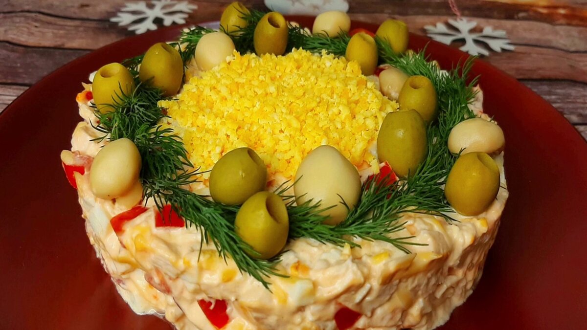 Всем привет! Вы на канале Емка Кулинария, меня зовут Татьяна и я рада, что Вы заглянули ко мне в гости!) Сегодня хочу поделиться с Вами рецептом нарядного и очень вкусного салатика с копчёной курицей . Его смело можно подать как на праздничный стол, так и приготовить для семейного ужина. Нам понадобится: ✔ Копчёная курица 250 гр ✔ Твёрдый сыр 100 гр ✔Помидор 2-3 шт ✔Варёные яйца 3 шт ✔Соль и черный перец – по вкусу ✔Майонез Для украшения: ✔Укроп, оливки, грибы, яичный желток 1. Помидоры у меня не крупные, поэтому я взяла 3 штуки и нарезаю их на кубики. Если помидоры сочные- то нужно обязательно отжать сок. 2. Натираю сыр на крупной тёрке, выкладываю в салатник. 3. Нарезаю варёные яйца и копчёную курицу, можно взять любую её часть, я использовала грудку. 4. Все ингредиенты соединяю в салатнике, солю, перчу и заправляю майонезом. Также можно использовать те приправы, которые вы любите. 5. Для красивой подачи я собирала салат в кулинарном кольце ,уплотнила слегка ложкой и украсила веточк