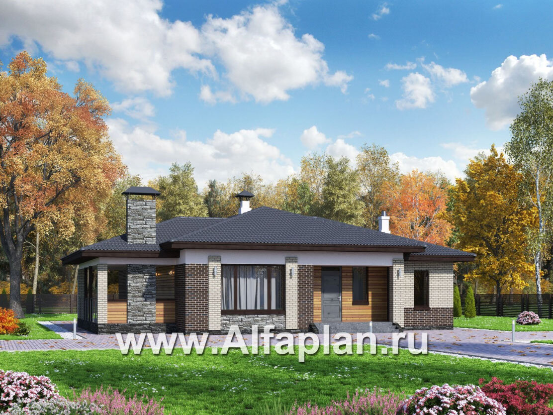 🏡 Дом по проекту «Юкон» - современный одноэтажный дом из кирпича/газобетона. Отлично подойдет для постоянного проживания. Подробности о проекте «Юкон» 💡 В отделке фасадов применяются материалы природных оттенков: светлая декоративная штукатурка, лицевой кирпич — темный и светлый, и деревянная вагонка. Фальцевая кровля на крыше — асфальтового цвета. Планировка дома функциональная. В центре дома — кухня-столовая-гостиная — единое пространство. На передний фасад вынесены мастер-спальня с гардеробной, прихожая, тех. помещение и сауна с душевой. На заднем фасаде расположены две спальни, между ними — ванная комната с санузлом. С левой стороны к дому примыкает терраса, на которой возможно оборудовать дополнительную обеденную зону и зону барбекю. 👍 Существует вариант этого проекта с другим фасадным решением: проект 646А-2 Подписывайтесь на наш канал Яндекс ДЗЕН. У нас – только уникальные авторские проекты домов. Еще больше интересных постов в нашем Telegram, VK, FB. Готовая проектная докум