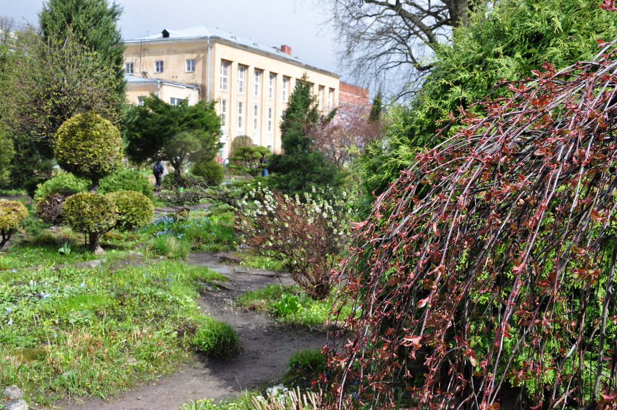 Начнем наше путешествие по Парку-дендрарию, полюбуемся первоцветами. Конец апреля- это еще и время волшебства- период цветения сакуры. На сайте Ботанического сада ежедневно публикуется информация о цветении сакуры и других декоративных деревьев и кустарников. Кроме того, можно найти карту-схему с указанием местоположения сакуры и ее родственников.