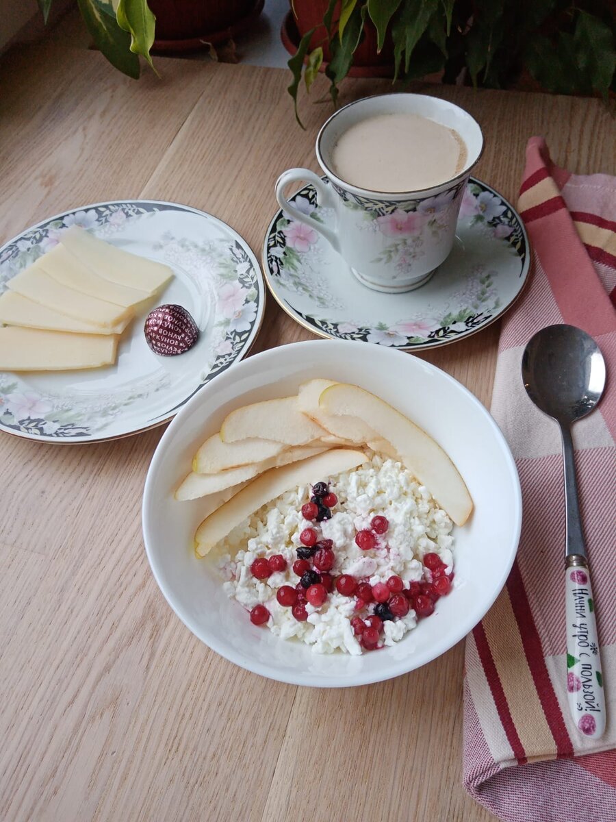 Приветствую всех заглянувших! Долгожданная суббота! После такого плотного и рабочего графика, и ремонтного, долгожданная вдвойне! Правда, похолодание у нас так и осталось, но вот солнышко с утра нас порадовало от души! На завтрак у нас был творог с грушей и брусникой. Мне понравилось сочетание. Плюс несколько кусочков сыра и конфетка, вот тут каюсь, надо заканчивать, если хочу и дальше похудеть. И кофе с молоком! Детям с собой порезала фрукты. У них короткий день был. На обед все дружно доели гороховый суп. Меня можно поздравить, я освоила все же готовку в мелкой посуде кастрюле😁. Ничего не вы бросилось, ни вылилось, все доели. На полдник пирог доели, даже сфотографировать не успела. А на ужин быстро отварила гречку и пожарила остатки котлет. Дети салат быстро сделали. А я ушла в гости к подруге, давно не собирались, пригласила меня на ужин, очень душевно посидели, пообщались, морально отдохнули. 🔥Буду очень благодарна, если Вы подпишитесь на мой канал! Это вдохновляет на н