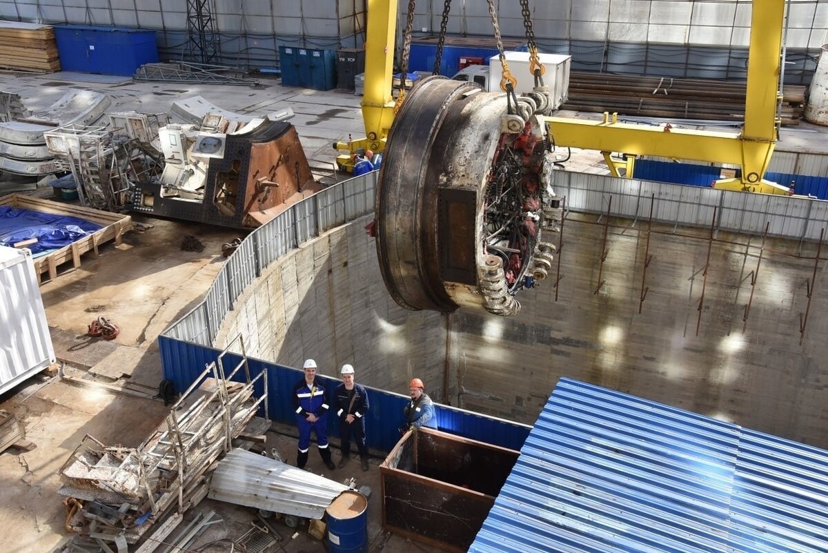Главный привод «Надежды» опустили в стартовый котлован на Туристской улице в Санкт-Петербурге