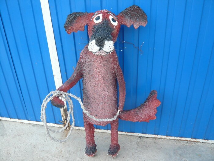 Такая собака из пластиковых бутылок своими руками займет достаточно свободного времени. Но результат длительное время будет восхищать посетителей дачи.