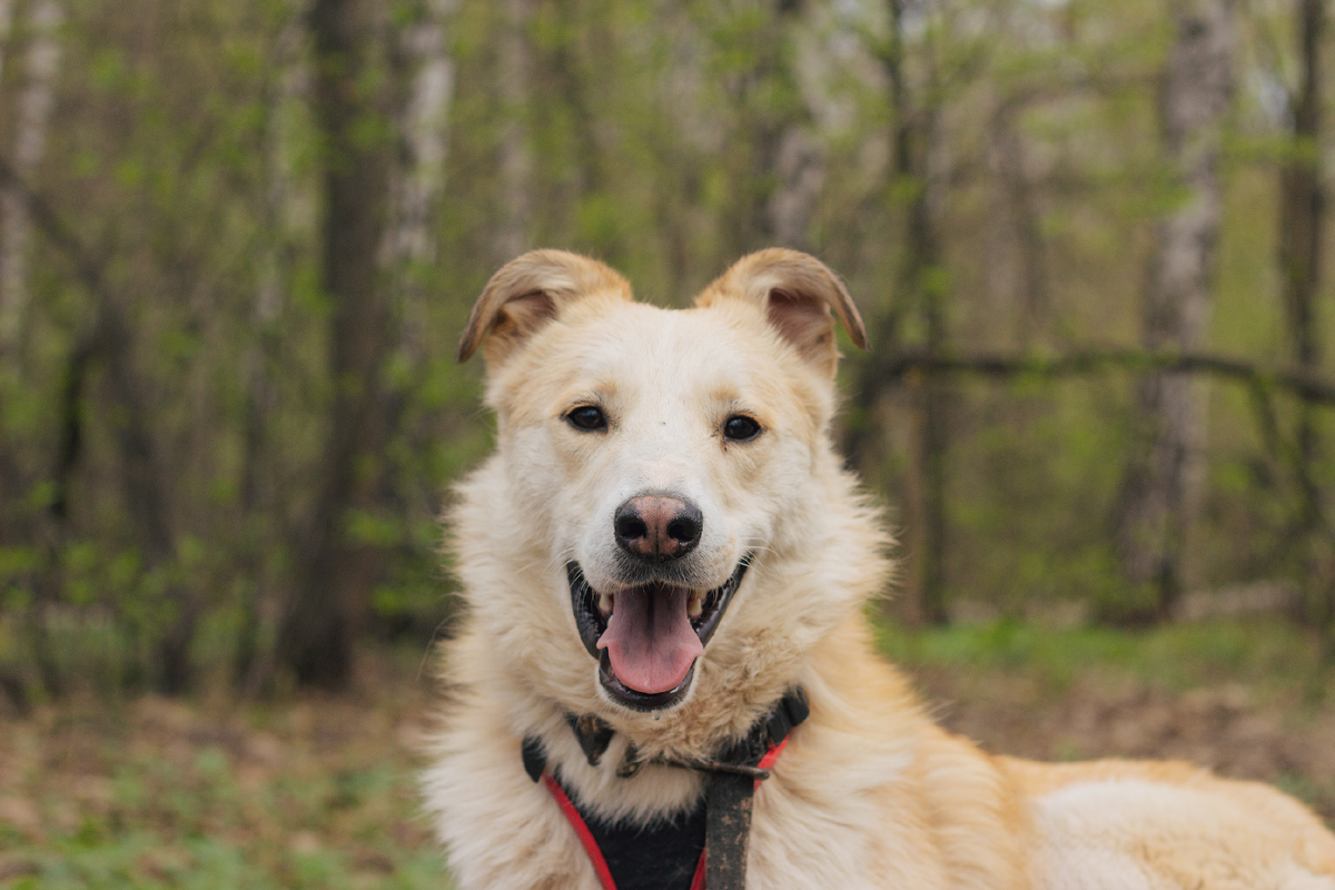 Сейчас Моня всё же немного побаивается незнакомцев, но уже гуляет не только с опекуном, но и с другим волонтером, и прогулки проходят вполне прекрасно. Моне просто нужно еще немного времени, чтобы привыкнуть. Все-таки в приют он попал совсем недавно.