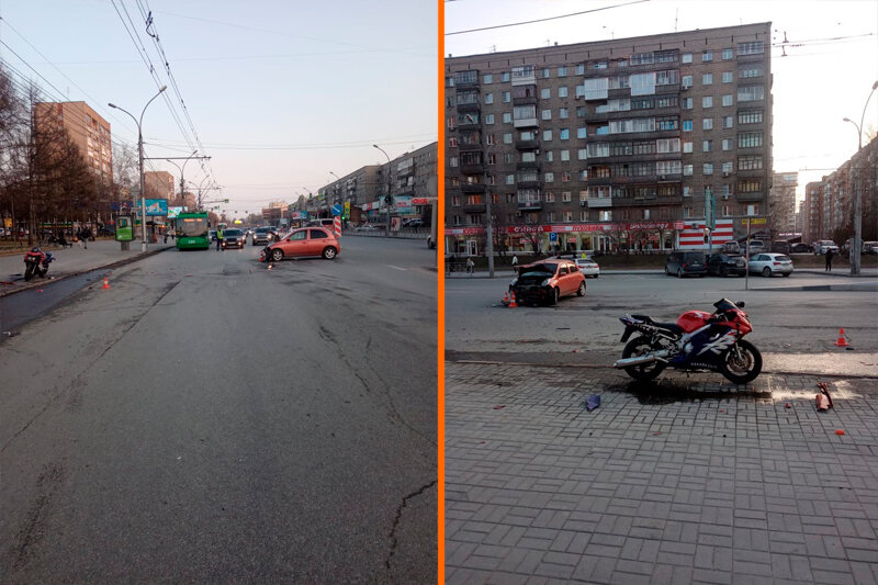 В Заельцовском районе Новосибирске на улице Красный проспект водитель 1998 года рождения на Nissan March врезался в мотоцикл Honda. От столкновения мотоцикл влетел уже в третий автомобиль — Nissan Qashqai. «В результате ДТП пострадал водитель мотоцикла. С различными травмами доставлен в лечебное учреждение. На месте работает наряд ДПС, устанавливаются все обстоятельства», — сообщает ГИБДД. Как уточнили в Госавтоинспекции, водитель «Ниссан Марч» в 18:50 30 апреля при развороте не уступил дорогу мотоциклисту, который двигался по встречной, из-за чего и могло произойти ДТП. Пострадавшему мотоциклисту 32 года — водители легковушек не пострадали. Ранее НДН.инфо, что в Новосибирске мотоциклист попал в больницу после столкновения с автомобилем. Столкновение произошло в ночное время на улице Никитина. Дмитрий Кузнецов