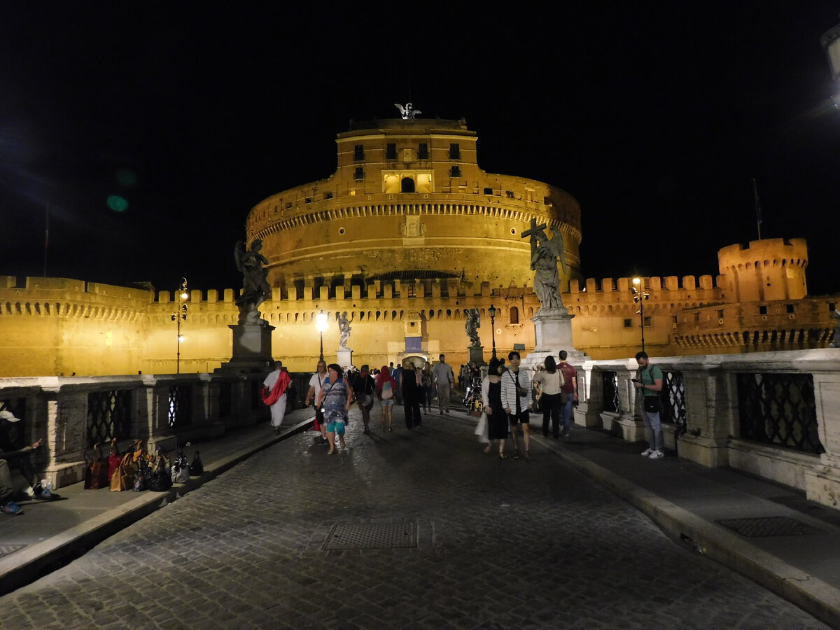 К самому замку можно попасть по великолепному мосту Святого Ангела (изначально мост Элия). Его баллюстрада украшена двойным рядом ангелов с символами Мучений в руках работы учеников Бернини (XVII век).