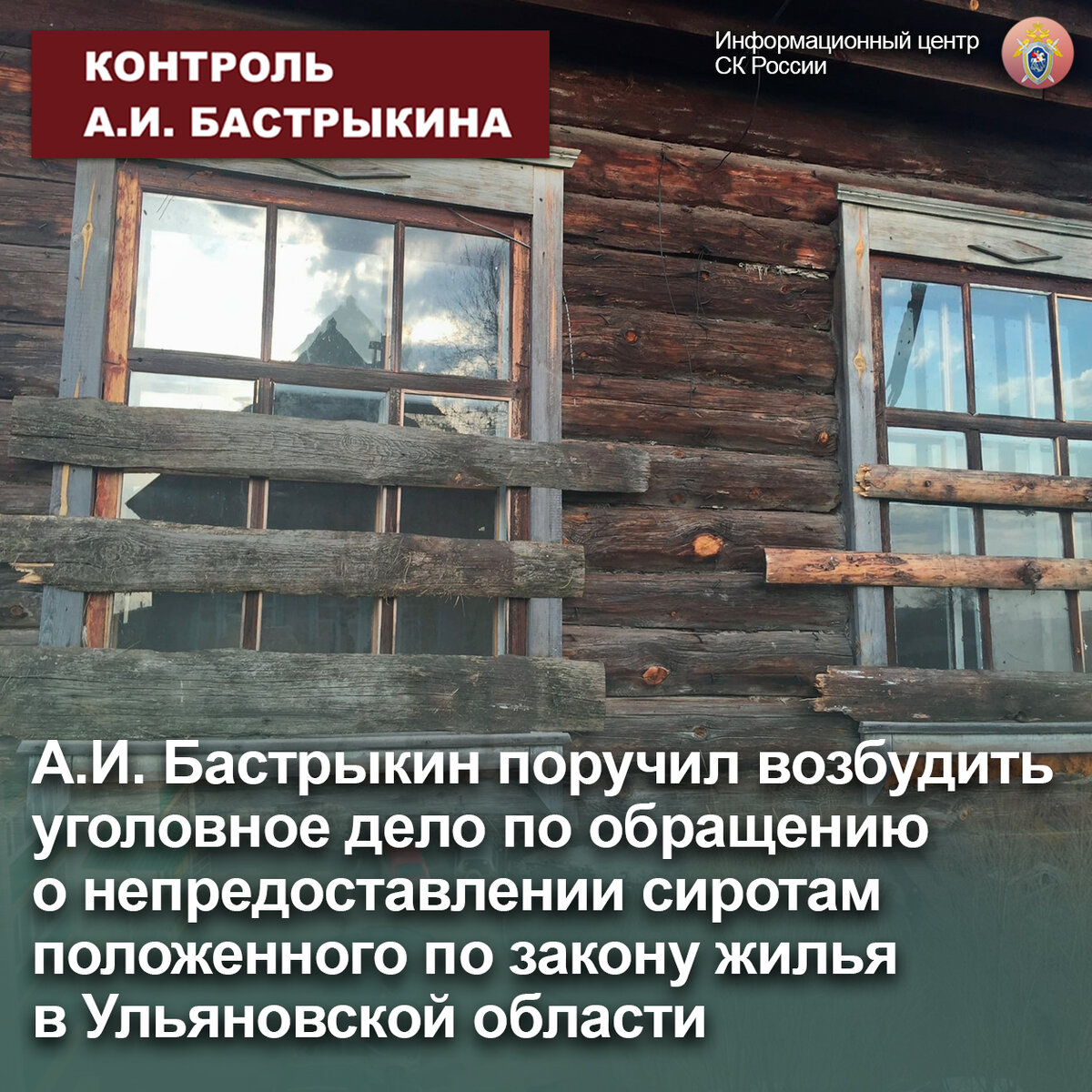 К Председателю СК России А.И. Бастрыкину в Приемную «ВКонтакте» обратилась девушка-сирота. Во время обучения в техникуме за ней, ее братом и тремя сестрами в Ульяновской области был закреплен деревянный дом, проживание в котором невозможно в связи с отсутствием коммуникаций и ремонта, однако постройка аварийной не признана. К настоящему времени только одной из сестер удалось добиться получения собственного жилья, другие сестры и брат положенными благоустроенными жилыми помещениями не обеспечены. Неоднократные обращения в компетентные органы результатов не приносят.