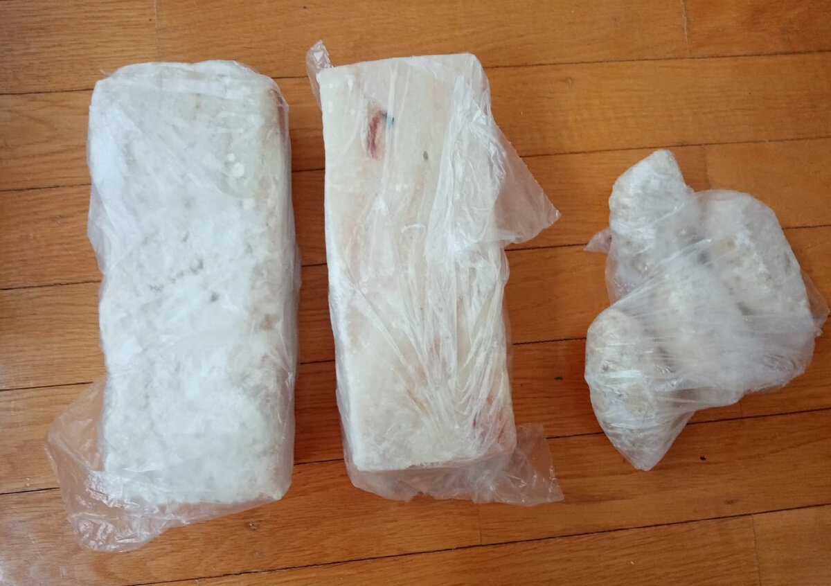 Приветствую всех заглянувших! Апрель у нас вышел очень экономным месяцем, мне удалось прожить совсем на скромную сумму, питаясь при этом полноценно! Теперь проверяю, что же из продуктов у меня осталось и переходит на май. Начну, как всегда, с мясного, это основное. Мясо я стараюсь закупать в начале месяца, остальную сумму распределяю уже на оставшиеся недели. Итак, мясное. Рыба, начну с неё. Её мя плохо едим, но все же стараемся употреблять в пищу регулярно. Из рыбного у меня осталось два брикета филе минтая по 1,5 кг каждый. И буквально 5 котлет. Говядины остался один кусочек, это порция, рассчитанная на два дня для нашей семьи. Говядину мы едим ещё хуже, чем рыбу. Индейка. Тоже один кусочек, но с индейкой дела обстоят гораздо лучше, чем с говядиной. Индейку мы любим как, в запеченой виде, так и с соусом Террияке. Вот её, я скорее всего, докуплю. Свинина. Её мы едим чаще всего остального мяса, и тушим, и запекаем, и жарим, вобщем, во всех видах это наш фаворит. Свинины ост