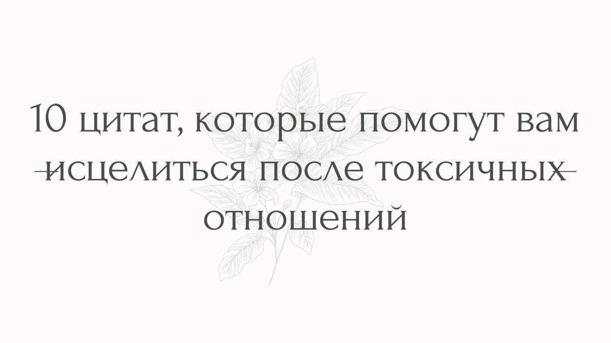 Никто не говорил, что исцеление после токсичных отношений будет легким, но это возможно при наличии решимости и терпения. Эти 10 цитат об исцелении от токсичных отношений напоминают нам о том, насколько мы стойки и сильны на самом деле, даже когда сталкиваемся с, казалось бы, непреодолимой болью.