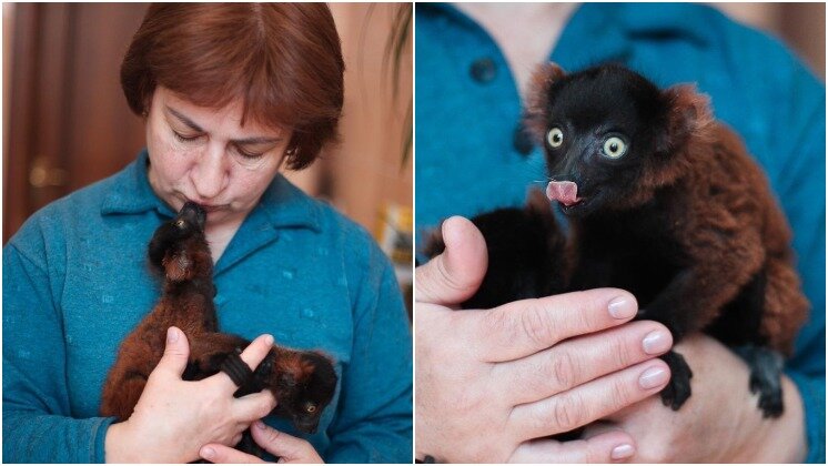 Сотрудница новосибирского зоопарка стала приемной мамой для двух лемуров вари