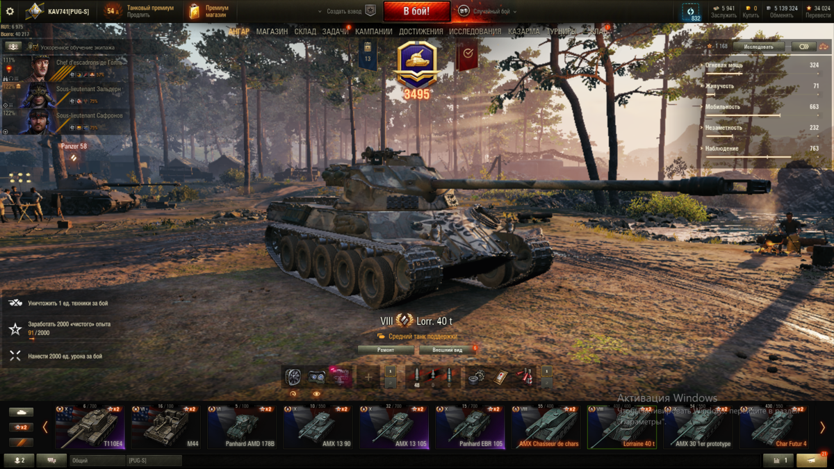 Всем привет сегодня мы сделаем обзор на танк 8 уровня Lorr.40 t cn Франции и так погнали 1.Конфорт огня Урон-300/300/400ед. Бронепробиваемость-232/263/58 Скорострельность 5,52 выстр/мин Урон в минуту 1655ед/мин Время сведения 2,70 с Разброс на 100 м. 0,32 м Боезапас 48 шт Боезапас барабана 4 шт МОБИЛЬНОСТЬ Масса/Предельная масса. 40/43 т Мощность двигателя 850 л.с. Удельная мощность 21,25 л.с./т Максимальная скорость 60 км/ч Скорость поворота 34 град/с Скорость поворота башни 36 град/с ЖИВУЧЕСТЬ Прочность 1300 ед Бронирования корпуса 40/30/25 мм Бронирование башни. 45/30/20 мм Время ремонта ходовой 8,02 с Наблюдение 380 м Дальность связи 750 м у нас 3 члена экипажа Командир Наводчик Механик-Водитель вот такую полевую советую ставить из оборудывания вот это Но на этом все всем пока пишите что вам написать