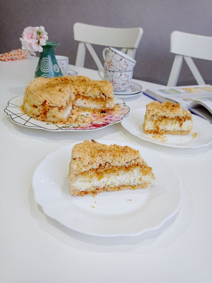 Пирог с творогом и яблоками и арахисом.