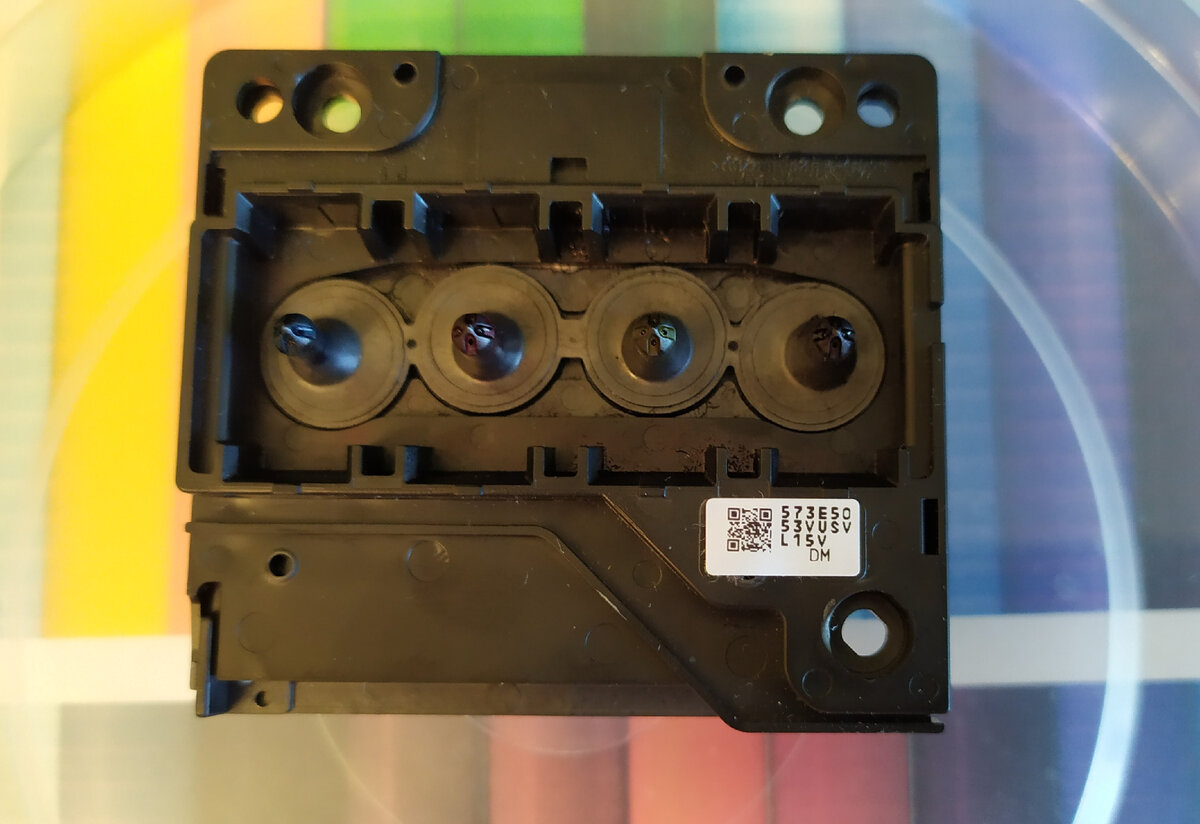 В продолжение статьи про разбор печатающей головки МФУ Epson TX209. Имеем ПГ с засорившимся синим цветом, что проявляется в полосах при печати и плохом тесте дюз. Под каждым из 4-х штуцеров расположен фильтр тонкой очистки, который имеет свойство со временем забиваться и плохо пропускать чернила. Их то и нужно попытаться прочистить. Для промывки потребуется: два шприца, трубка от медицинской капельницы, емкость, промывочная жидкость и нашатырный спирт (10% раствор аммиака). Т.к. в моём случае использовались водорастворимые чернила, то для промывки я смешивал 1 часть раствора аммиака с 4-5 частями спецжидкости. В случае с пигментными чернилами аммиак использовать не следует. Также не рекомендуется использовать этиловый спирт в промывочных целях из-за его воздействия на резины и пластик. ● Соединяем отрезок трубки со шприцом, второй конец трубки одеваем последовательно на каждый штуцер и откачиваем остатки чернил из ПГ. ● Переворачиваем ПГ штуцерами вниз и кладем на тряпочку. Набираем
