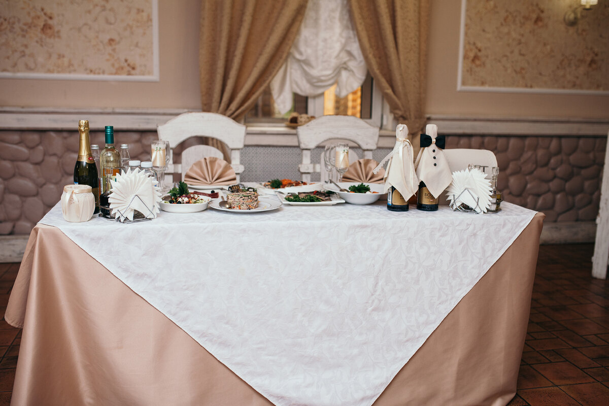 Всё началось с того, что примерно в одно и то же время на работе стало известно о двух свадьбах: моей и ещё одного сотрудника, Мистера А (назовём его так). Мистер А женился в марте, а я в августе. Соответственно, достаточно часто у нас заходили беседы о подготовке. И представьте моё удивление, когда мужчина (!) сам занялся свадебным hand-made декором. Он сделал невероятные вещи: разработал собственный вензель, которым украсил подушечку для колец и обозначил президиум на плане рассадки гостей, украсил коробку для подарков и бокалы для молодоженов и даже сшил костюмы на бутылки шампанского. Платье бутылки-невесты вообще заслуживало особого внимания, ведь там был даже корсет со шнуровкой! Короче это всё очень впечатляло, НО! мне не нравится стиль "дорого-богато". Слишком вычурный или чрезмерный декор портит внешний вид и сводит на нет все старания, какие бы золотые руки его не сотворили. По крайней мере, на мой вкус. Таким образом, при "помощи" Мистера А я точно определилась с тем, что мой декор будет максимально простым.
