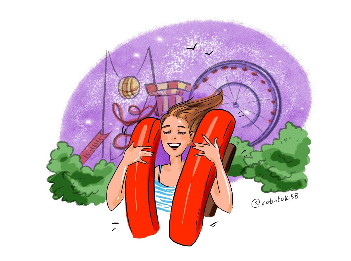 В этот момент внутри Насти будто открылась какая-то потайная дверца, и чувства огромным комом вывалились и накрыли девушку с головой! Одновременно ей стало очень страшно и очень свободно и так радостно, как было только в далёком детстве, когда папа поднимал её высоко над головой и кружил. Девушка громко завизжала от восторга. А «катапульта» то бросала её в небо, то швыряла к земле.