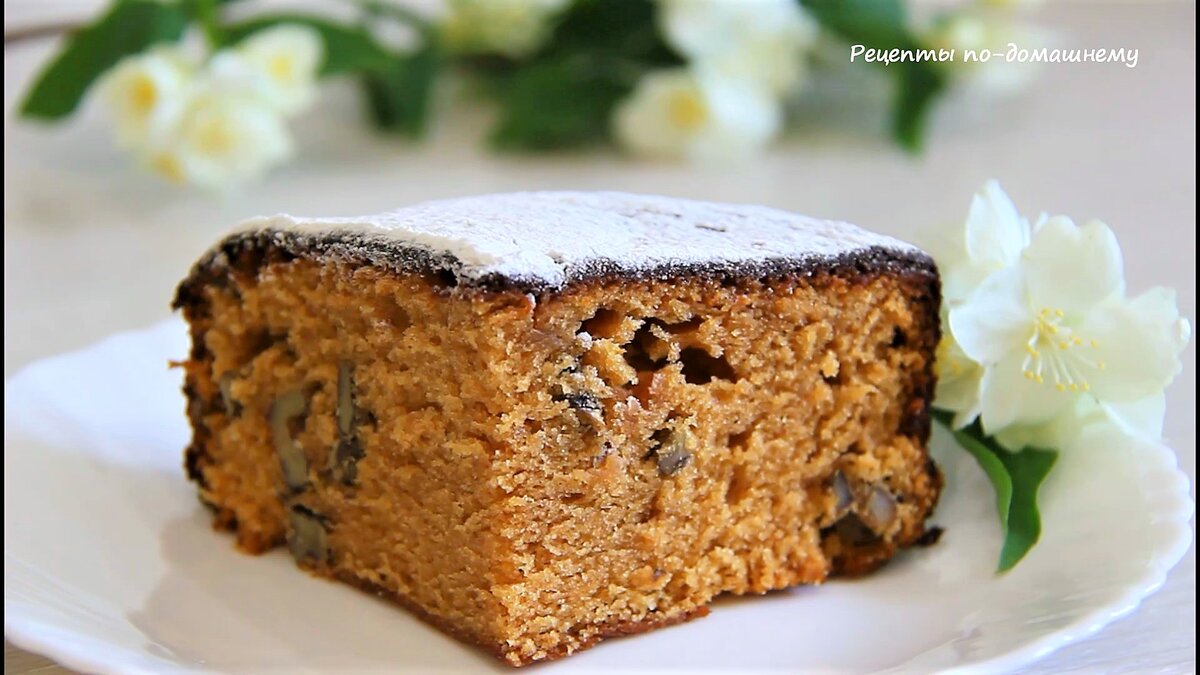 Карамельный пирог с грецкими орехами. Набор продуктов минимальный, а как вкусно получается!