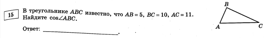Иногда, когда я решаю задачи, у меня случаются "затыки" - моменты, когда не можешь решить простую, казалось бы, задачу или вспомнить нужную готовую формулу. Именно тогда рождаются такие шедевры :) В этот раз задача была вот такая: В треугольнике ABC известно, что AB=5, BC=10, AC=11. Найдите cos∠ABC.