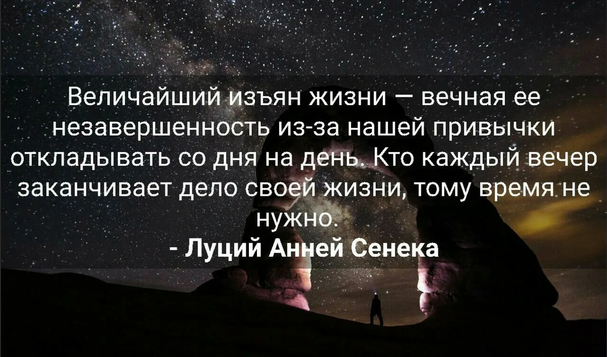 Величайший изъян жизни — вечная ее незавершенность из-за нашей привычки откладывать со дня на день.