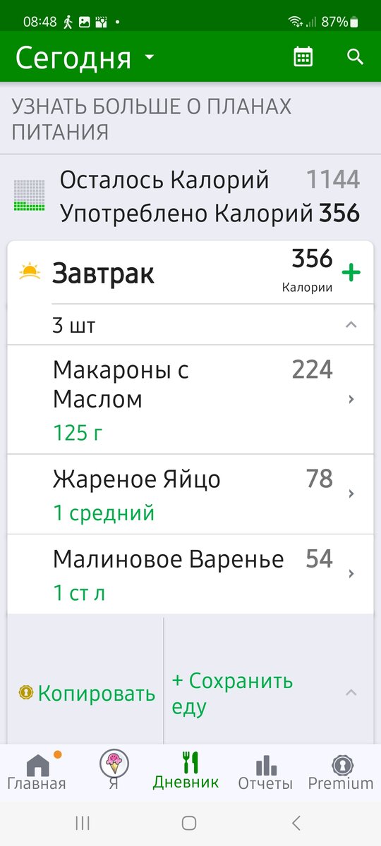 Привет! Добрый вечер) Сегодня я пишу последнюю ежедневную статью про исхудание. Просто нет смысла каждый день писать одно и тоже, лучше буду делать такую статью один раз в неделю. С приложением, считающим калории мы разобрались, с меню, в принципе, тоже. Тем более, что с меню все индивидуально - начиная от материальных возможностей и заканчивая особенностями организма. Мне например, не подошло много свежих овощей, пришлось их экстренно убирать. Утром пила чай с малиновым вареньем. Было мокро и прохладно, ночью и рано утром шёл дождь. А потом выглянуло солнце и как начало парить, просто как в бане, сил нет. Такие перемены погоды очень бьют мне по сосудам, давлению и самочувствию. Поэтому сегодня я ходила с трудом, голова кружилась, шатало во все стороны. Решила сойти с маршрута не добивая 10 тысяч. В обед ела отварную курицу и чай с вареньем и блинчиками. И на ужин отварную курочку) Самый лучший вариант на мой взгляд. По калориям за день получилось так - Всем приятного вечера )