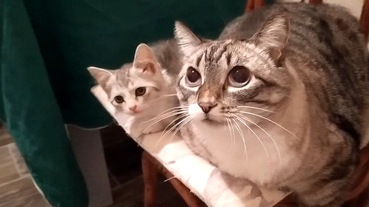 Хотел снять как сытые коты вместе лежат на стуле, довольные и ничего не вымогают. Но Беляшик вдруг решил поиграть в таинственного обиженку и резво переместился под табует, чтобы оттуда смотреть на меня застенчиво-вымогающим взглядом. А Тигрунья в одну харю развалилась на стуле живым воплощением пофига. На пуфике.