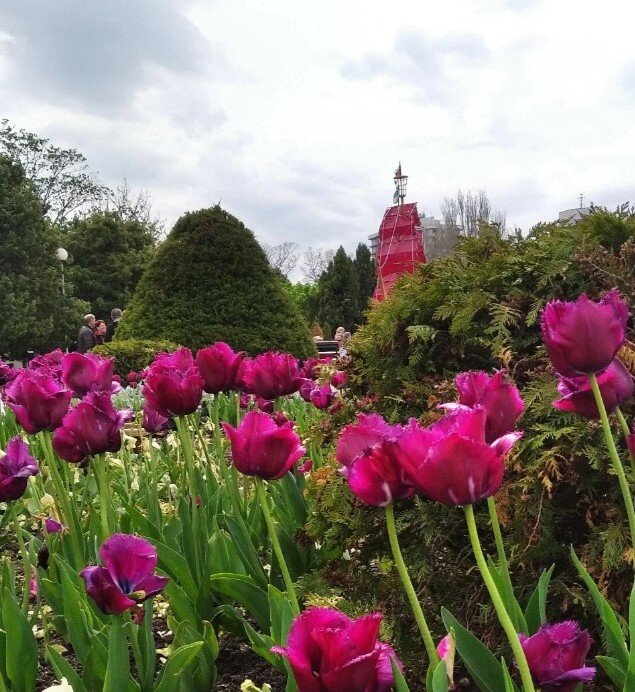 В Анапе сезон тропических дождей, почти нескончаемым потоком льют день и ночь последние пять дне. Не прекращаясь. Но весну цветенья не отменить! И всё-таки случаются оконца просветов, когда солнце появляется на небосклоне. Выбралась на прогулку на прошлой неделе, в среду 19 апреля, как раз в Анапе случилось лето +20. Солнце, к сожалению, тут же спряталось и фотки вышли темноватые. Несмотря на погоду, красота у нас необыкновенная. Каждый год, хотя я здесь живу уже 9, лет не могу нарадоваться бурному цветению садов. Это всегда что-то невероятное... в душе вызывающее восторг и пение. Ну, вы сами знаете... как это бывает)). И стоило мне принять решение поснимать, как солнце позвало облако, а значит освещенность уже не та. Смотрите то, что получилось. У памятника Ленину. А это обратная сторона улицы Ленина. В городе сейчас чисто, просторно, отдыхающих очень мало, кое-где лишь видны люди. Дальше идет в сквер Гудовича. Там поставили красивые скамейки. В этом году скамеечное направление, во м