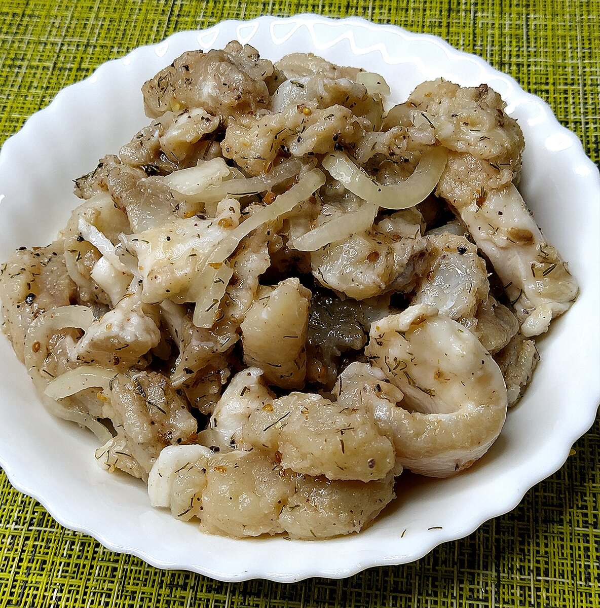 Филе пангасиуса размораживать в холодильнике. Нарезаем рыбку кусочками или полосками небольшими,толщиной до 1 см. На 1 кг рыбы. Соль-15гр. Сахар-5гр. Кориандр молотый-3гр. Перец душистый молотый-3гр. Перец красный жгучий-0.3гр. Чеснок сушёный -1 гр. Укроп сушёный -1гр. Имбирь порошок-1гр. Уксусная эссенция 70%- 1(2) ст.л Лук кольцами или полукольцами-1(2) шт. Все ингридиенты добавить в рыбку и в холодильник на 24 часа! Блюдо готова,вкусная нежная,ароматная, маринованная рыбка!