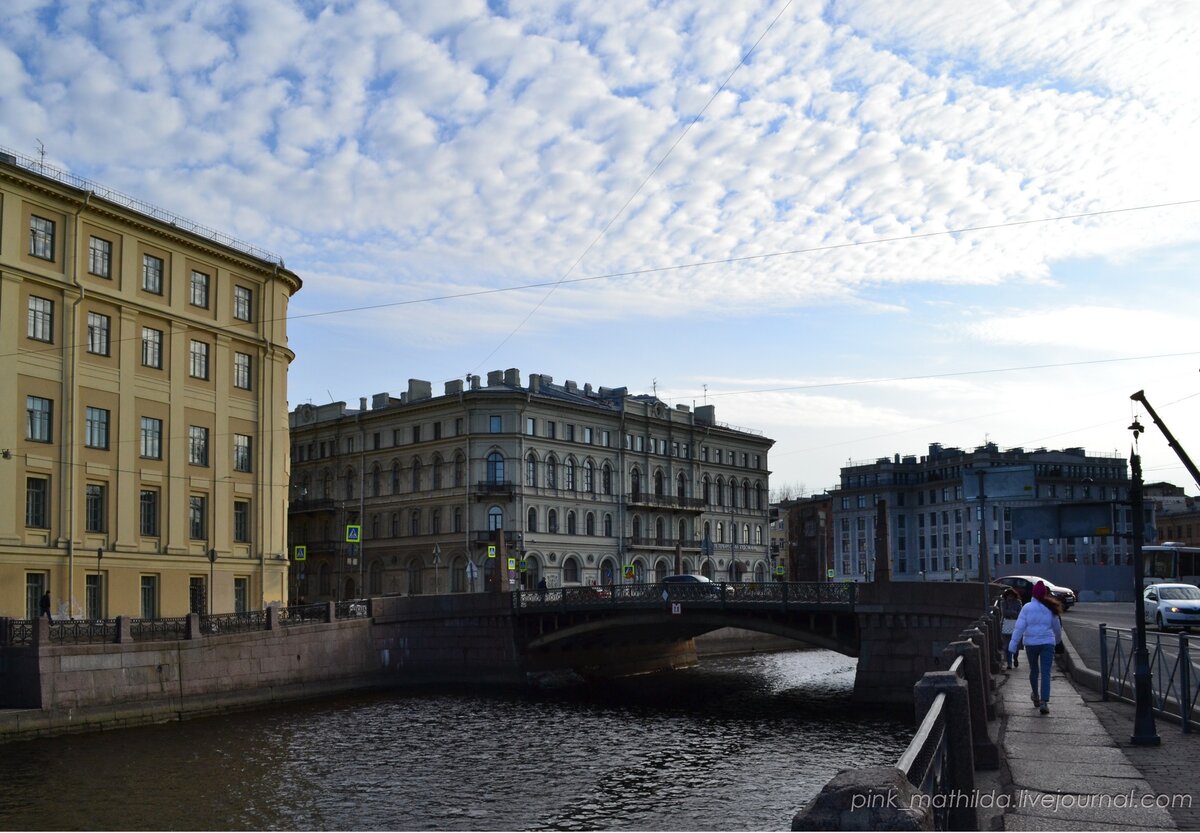 Те самые Крюковские казармы. Сейчас в них переехал центральный Военно-Морской музей. Наш мост на фото - справа.