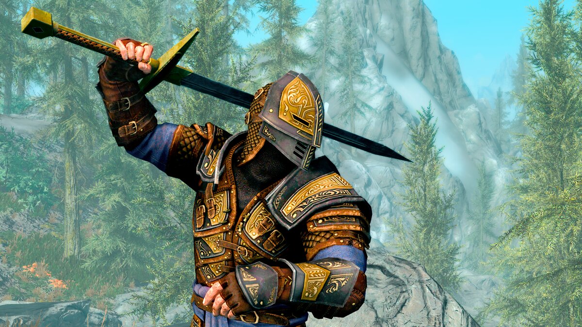 Получение меча введено просто, без выкрутасов – при выходе из локации Довакин встречает у Стены Слов призрак паладина и, победив его, забирает трофей с останков призрака.