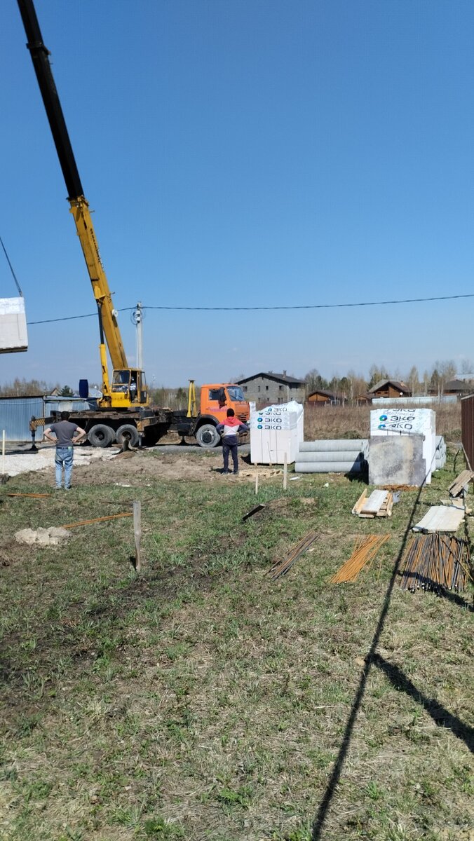 На этой неделе мы выходим на следующий объект для производства работ по строительству дома. Тут мы будем строить одноэтажный дом с увеличенной толщиной блока . Пирог стены будет из газосиликатного блока 375мм d500 + пенополистирол 100мм + облицовочный кирпич 120мм Трудности 1. Заказчики решили изменить расположение дома, как следствие необходимо переставить 14 поддонов с блоком. 2. Заезд на участок был сделан заказчиком не капитальным и заезд строительной техники не возможен. Ранее я писал, как на этом участке застрял манипулятор вездеход. А теперь сюда не смог заехать кран. Принято решение сделать железобетонный заезд. 3. Электрический щиток через дорогу. Тут особых проблем не было, просто засунули кабель в пнд трубу и прокинули через дорогу, но в дальнейшем необходимо делать прокол или ставить столб на своей стороне, чтобы завести вводной кабель на участок. Примечания: Трудности возникают при организации строительства часто и главное без нервов научиться их оперативно реша