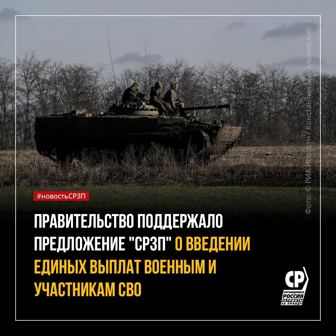 📑 СПРАВЕДЛИВАЯ РОССИЯ - ЗА ПРАВДУ предлагает выплачивать всем военнослужащим и участникам СВО одинаковые выплаты и надбавки. Это правило также должно распространяться на ликвидаторов последствий аварий, катастроф природного и техногенного характера, других чрезвычайных ситуаций и в иных особых условиях, связанных с повышенной опасностью для жизни и здоровья. Размер выплат, включая повышающие коэффициенты к денежному довольствию, предлагаем устанавливать Правительству РФ. Об этом говорится в нашей законодательной инициативе. Очень рады, что Правительство услышал