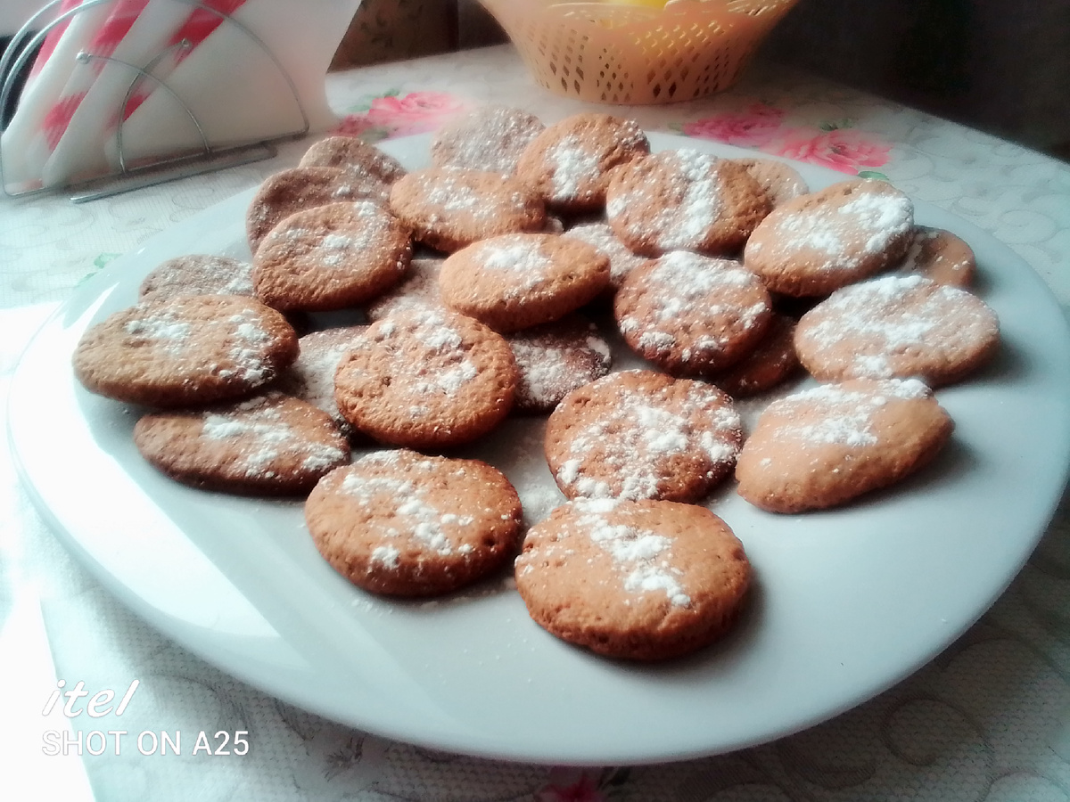 Простой, и быстрый вариант приготовления! Печенье получается, вкусным и рассыпчатым! Рецепт: Масло сливочное ( маргарин)-1 пачка. Яйца - 2 шт. Сахар - 4 ст.ложки. Какао - 4 ст.ложки. Мука - 2,5 стакана. Разрыхлитель - 1ч.ложка. Масло заранее достаем из холодильника, пусть оно немного полежит. Когда оно размягчиться , кладём его в чашку, добавляем сахар, яйца, какао, разрыхлитель и муку. Замешивает не тугое тесто. Берём скалку, раскатываем в пласт и стаканом вырезаем печенье. Раскладываем на противень,смазанный маслом, либо застеленный пергаментом. Духовку разогреваем до 180 градусов, и ставим выпекать минут на 20 - 25 минут до готовности. Сверху можно посыпать сахарной пудрой.