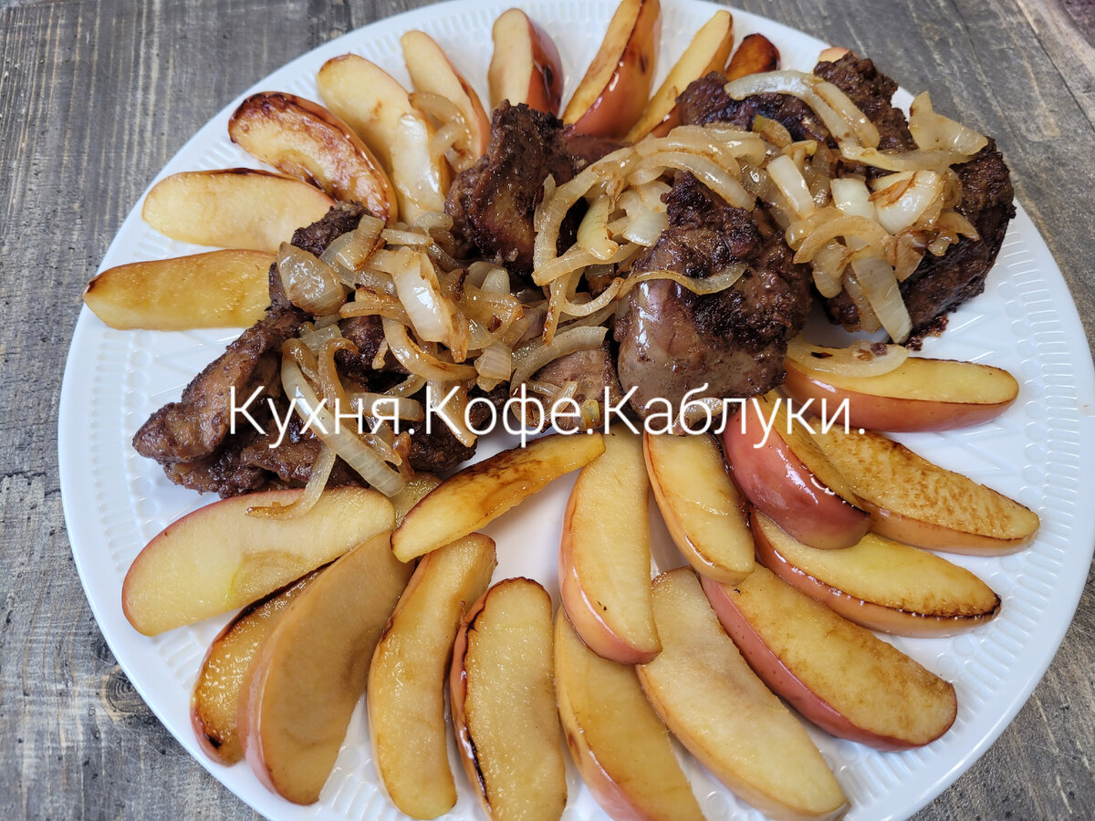 Готовить дома красиво и вкусно-легко...Простые продукты, хорошее настроение и творчество...вуаля...и всё готово😁👍 Печень индейки, лук и ароматные яблоки...Это так вкусно и очень хорошо дополняет вкус печени. Готовим печень с яблоками👍. Купила в магазине свежую печень индейки-<<Пятёрочка>>. Очень красивая и свежая.Обычно печень чуть-чуть горчит, но если её подать в красном вине или с яблоками, то эта горчинка совсем не мешает. Яблоки я взяла крепкие, ароматные и сладкие. Нарезаем яблоки. Жарим на среднем огне.Чуть-чуть масла растительного или оливковое.Соль, чёрный перчик. Внимание! Яблоки будут пускать сок, можно накрыть крышкой. Поджарили яблоки и в эту сковороду идёт лук. Нарезаем полукольцами и жарим до готовности. Не пережарьте-лук должен быть красивым! Печень переложить в кулёк, добавить соль, перчик.Хорошо перемешать и 1ст.л.муки-с горкой! Ещё раз хорошо перемешать.В пакете это делать легко и просто, а главное удобно и стол чистый😁👍 Жарим на маленьком огне.Не забывайте пере