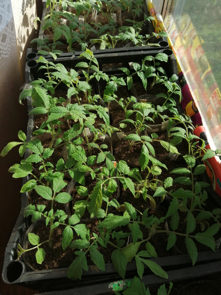 Семена томатов я всегда замачиваю на салфетки, в прозрачный контейнер с Энерген + HB101. Как проклюнется одно семечко, сею все, даже не проклюнутые. Сухими семенами у меня плохая всхожесть. В этом году семена замочила 11 марта. Сею один сорт в один 200 мл стакан. Пикирую через 15 - 18 дней в 200 мл стакан. Потом переваливаю в 0,5 л стакан. В теплицу высаживаю в начале мая. Рассада до пикировки растёт под двумя дешёвыми фитолампами по 11Вт и простая светодиодная на 20Вт. После пикировки под фитолампой 35 Вт на окне. Подкармливаю Монокалийфосфат 1гр на 1л воды до пикировки. Здравень турбо для рассады 1,5гр на 1л воды после пикировки. Поливаю перекись 1ст л на 1,5л воды + 1 капля йода. Поливаю Кальциевой селитрой 1гр на 1 литр воды. Опрыскиваю Феровитом. Все подкормки делаю по одному разу.