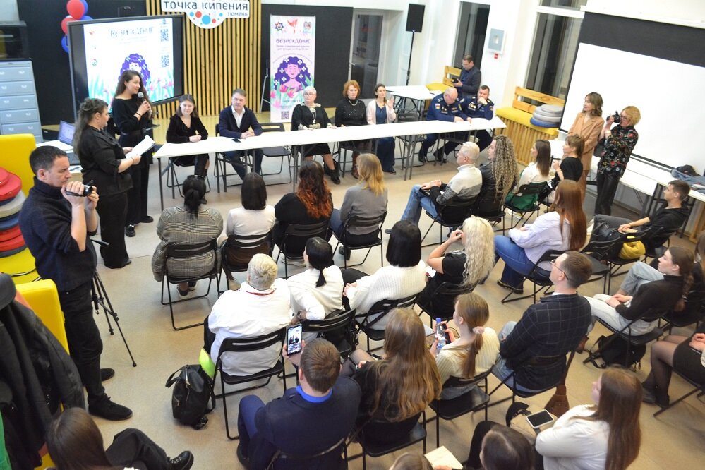 18 апреля 2023 года в пространстве коллективной работы «Точка кипения – Тюмень» прошла презентация нового необычного проекта «Возрождение», целевой аудиторией которого являются женщины.Проект реализуется под эгидой АНО Центр поддержки семей «Помощь рядом» при поддержке Альянса социально ориентированных некоммерческих организаций Тюменской области. Гостями презентации стали около полусотни человек, среди которых были лидеры некоммерческого сектора, гражданские активисты волонтеры, представители благотворительных объединений, бизнеса и средств массовой информации. В начале встречи участников поприветствовала главный идеолог и инициатор проекта «Возрождение» Екатерина Самбук. «Наш проект по концепции чем-то напоминает сказки «Золушка» и «Гадкий Утёнок». Участницы - 5 девушек отобранных из 1253 претенденток, должны пройти внутреннее и внешнее преображение. Помогут им в этом опытные бьюти-мастера и практикующие психологи разных направлений. Участие в проекте абсолютно бесплатное» - рассказа