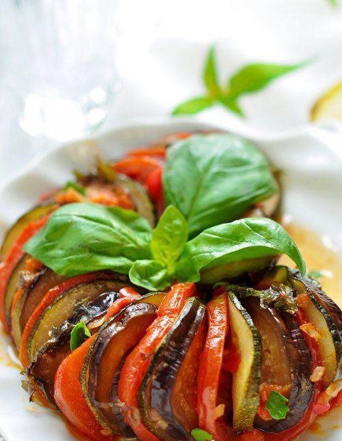 Знаменитое французское блюдо от мини-шефа из мультика “Рататуй” – простое в приготовлении и одновременно полезное блюдо. Вкуснейшее сочетание цукини, томатов и баклажанов с изысканными прованскими специями. Рекомендуем попробовать приготовить такой ужин по фирменному рецепту вместе с детьми, и дать им побыть в роли маленьких шефов. Итак, нам понадобится: Для соуса: Приготовление: 1. Для начала приготовим соус: лук и чеснок почистить и мелко порезать. Нагреваем в сковороде оливковое масло, добавляем репчатый лук с чесноком и тушим на медленном огне примерно 8 минут. 2. Помидоры очищаем от кожицы и нарезаем на маленькие кусочки. Перец нарезаем точно так же и добавляем вместе с томатами на сковороду. 3. Приправляем специями и солью по вкусу, можно добавить немного воды. Тушим на маленьком огне около 10 минут. 4. Тем временем разогреваем духовку до 180 градусов, а цуккини, баклажан и помидоры нарезаем тонкими кружочками. 5. Соус со сковороды пробиваем в блендере вместе с 2 ложками том